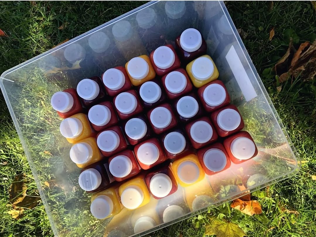 Our gentle cleanse is $99.99 for 21 × 300 ml smoothies. You can choose 3 different kinds. The idea here is to eat a very clean dinner meal on your own & drink 7 drinks plus 2-3 liters of purified water each day for 3 days.